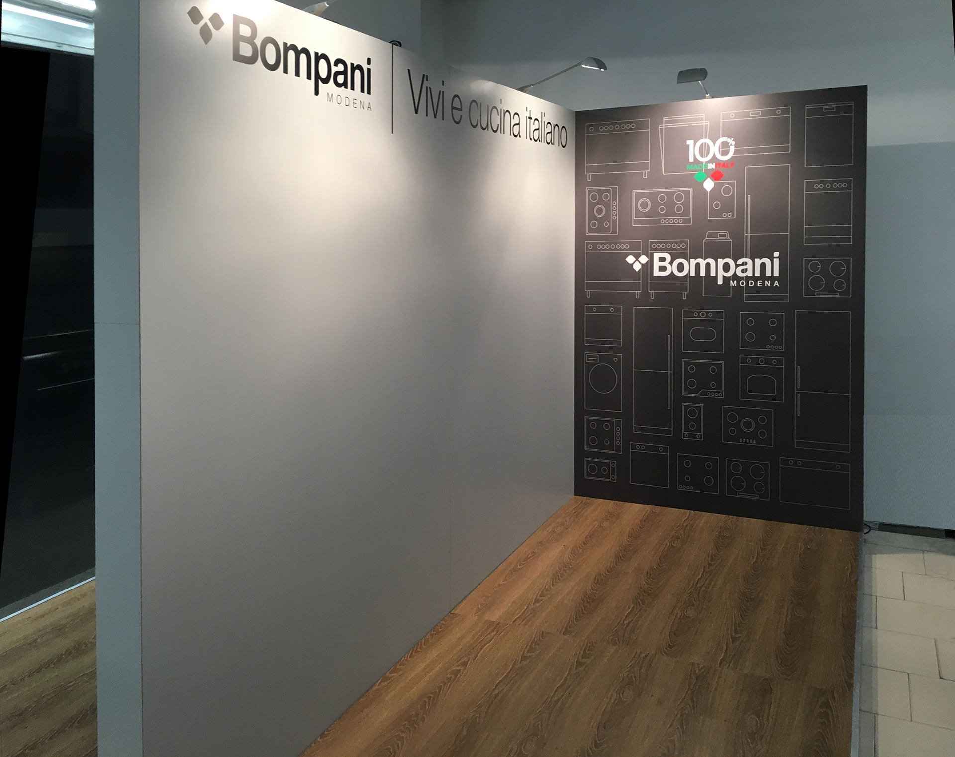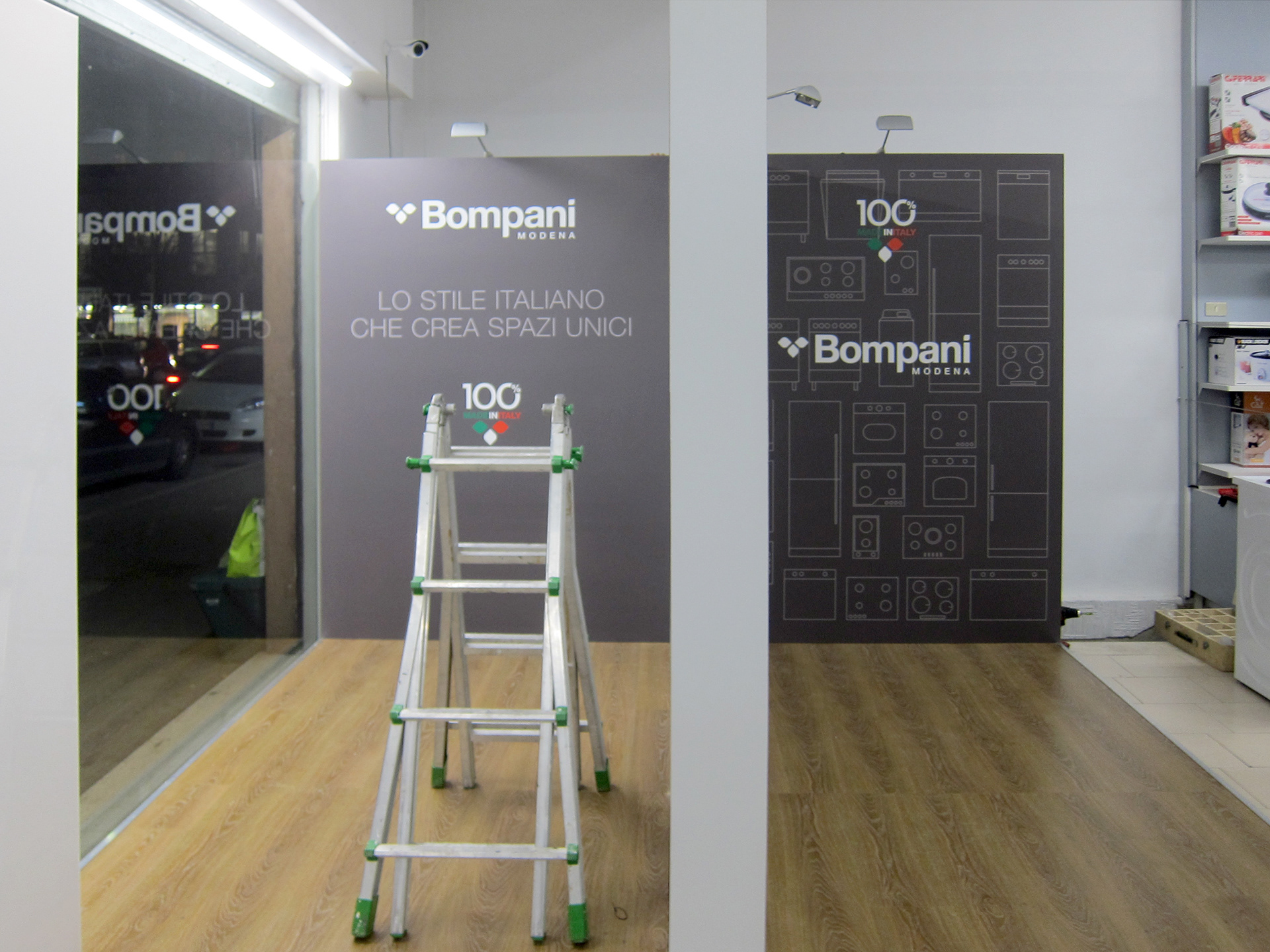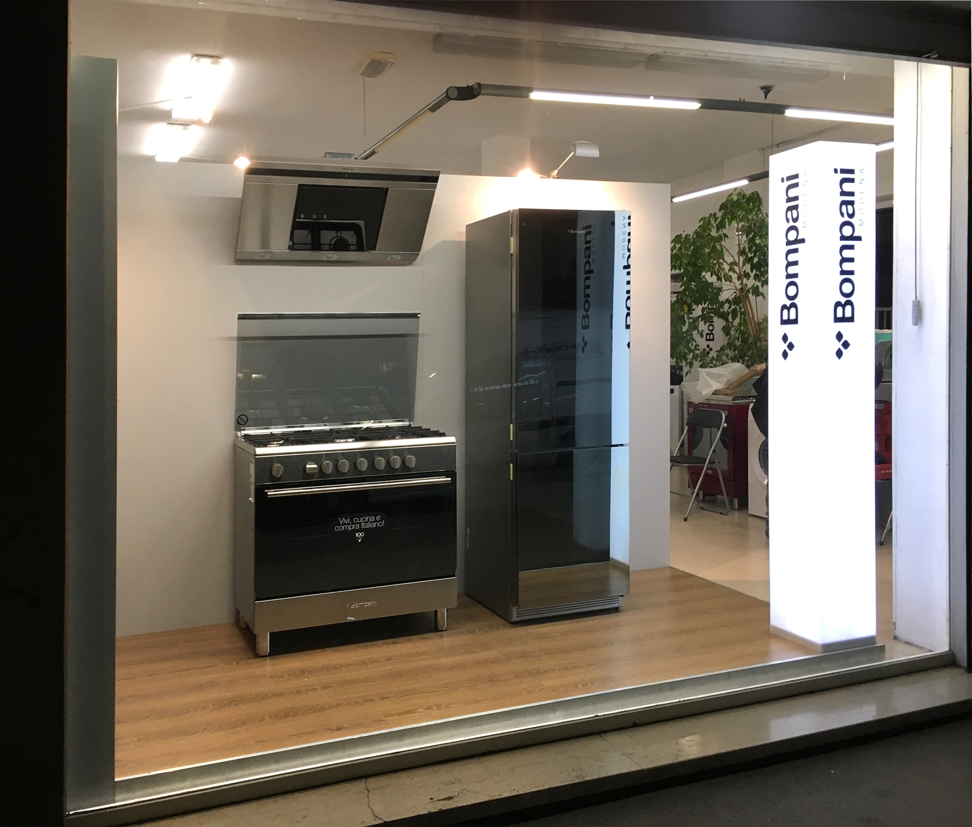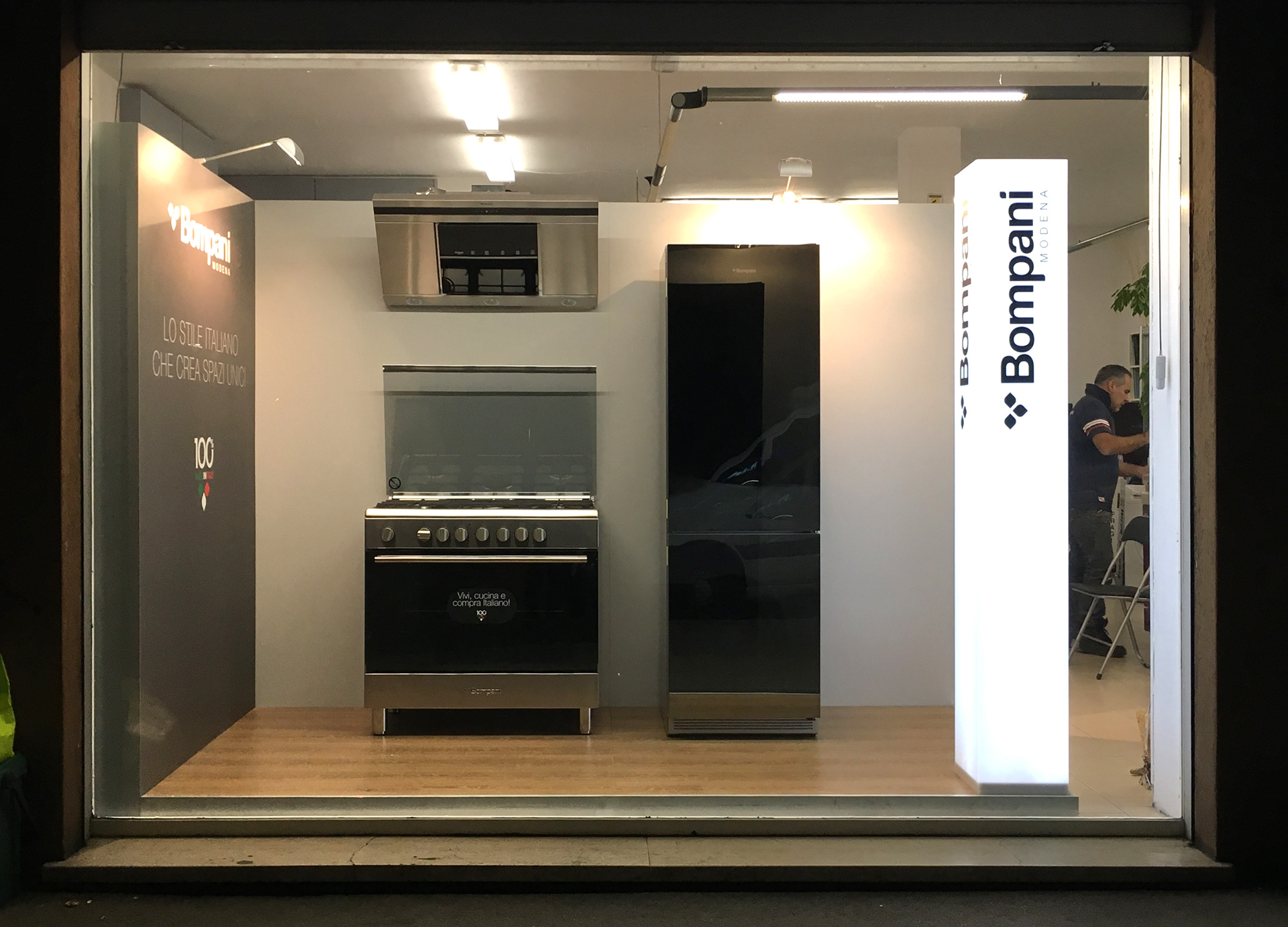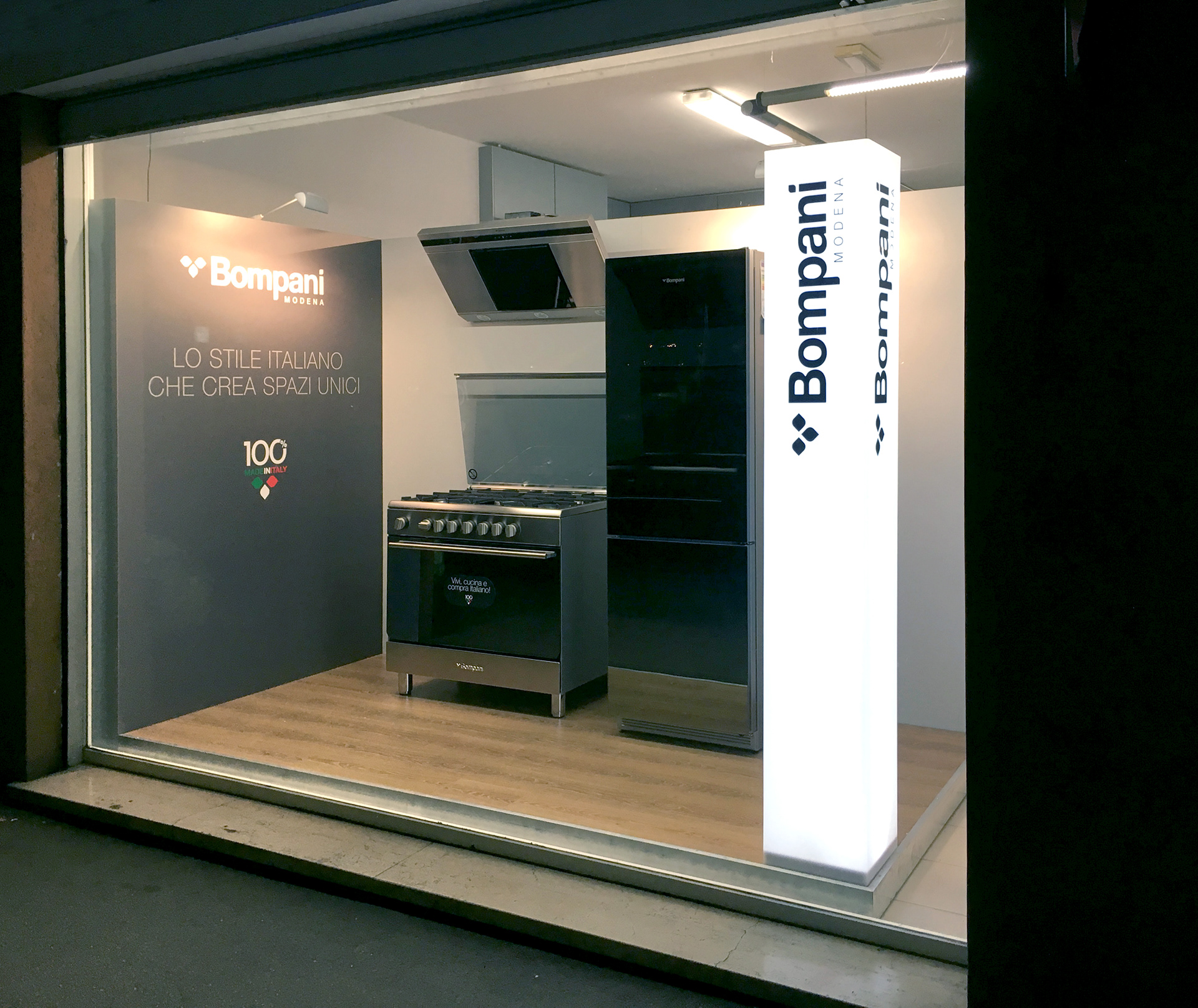 Corner espositivo per negozi e showroom per Bompani Modena, produttore di cucine e elettrodomestici.