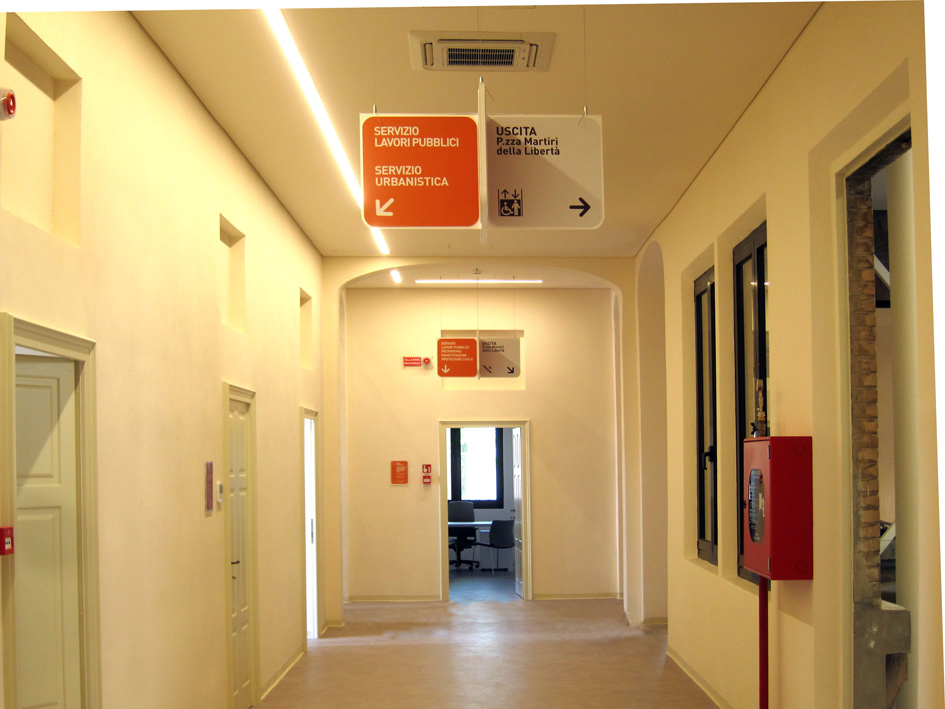The building of the old schools becomes the new venues of the townhall. A redesign of the municipal coat of arms and a strong and simple wayfinding system of signals.